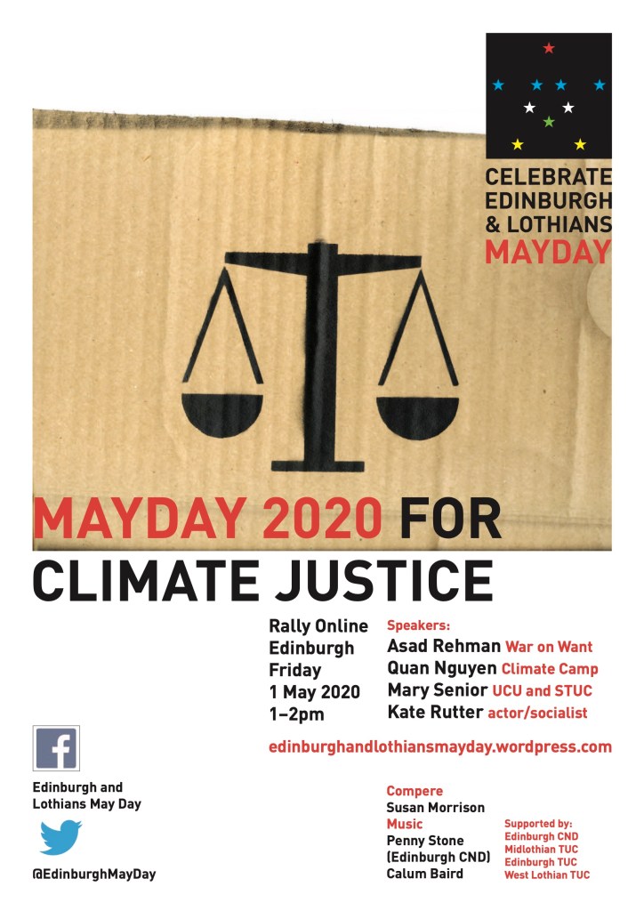 Go to Edinburgh and Lothians May Day Face Book Page – it will be live streaming to the page from just before 1pm.