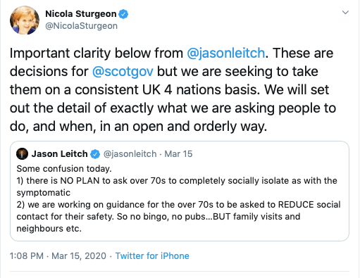In his talk Ben refers to Nicola Sturgeon’s tweet: